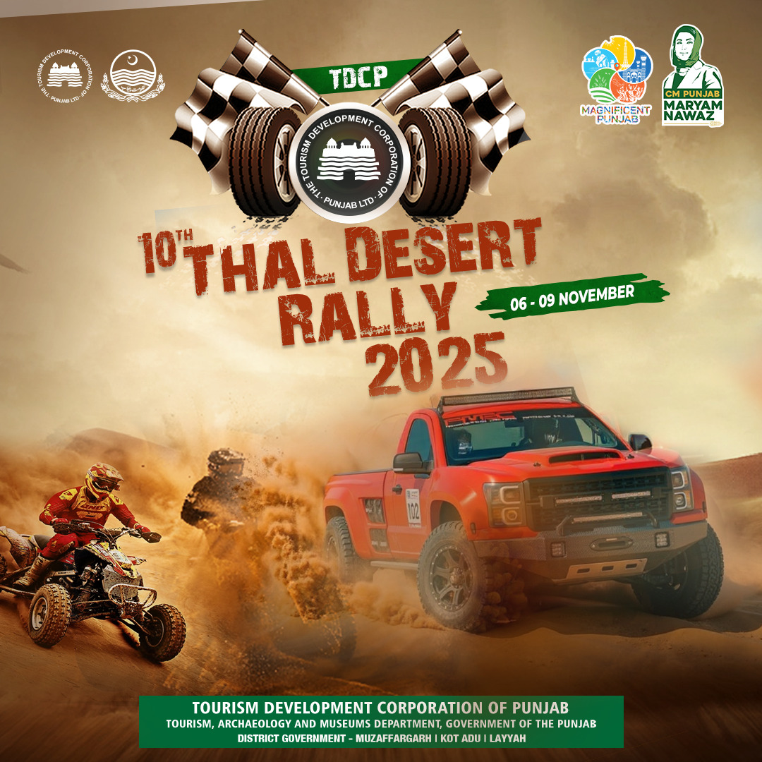 Tourism Development Corporation of Punjab (TDCP) is going to organize the Thal Desert Rally in the districts, Muzaffargarh, Layyah, Kot Addu and Jhang. TDCP started the Cholistan Jeep Rally event in the majestic desert of Cholistan during the year 2005 with a view to promoting Southern Punjab as a winter tourist destination and promoting motorsports in Pakistan. After the overwhelming popularity of the Cholistan Jeep Rally, now Thal Desert Rally has also gained popularity in the Thal Desert surrounding areas. it was persistent demand by the people of South Punjab to organize a Jeep Rally in the unique landscape of the Thal desert.